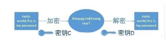 对称加密就是加密和解密都使用的是同一个密钥。如下图: